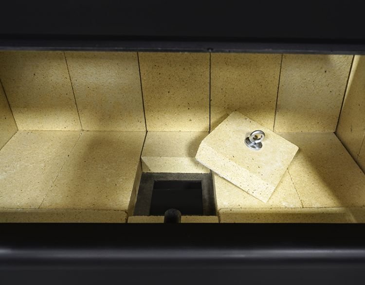 The easy access door provides a simple way to tend to your fire wood. The brick lined firebox along with the ceramic glass window allow for safe, efficient and easy to view fires.