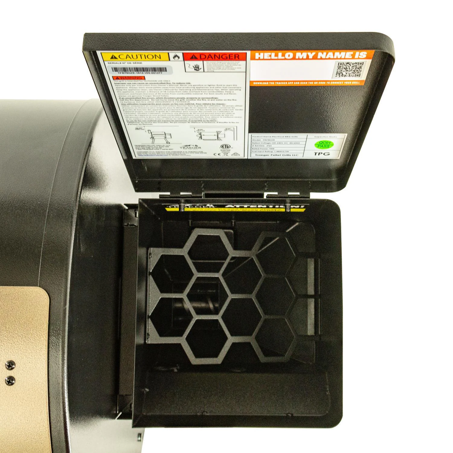• Large capacity pellet hopper, holding up to 18 pounds of Traeger hardwood pellets